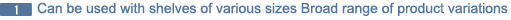connections*1. These lights can be installed flexibly in shelves of various sizes. Customized production is also available for special sizes not included in the current product lineup*2.