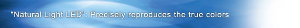 Our original “Natural Light LED,” which precisely reproduces natural sunlight, achieves“Ra98”(Correlated color temperature: 5000 K) out of a maximum 100 on the “average color rendering index,” a standard index of color reproducibility*. This is the highest level ever attained in the industry. This high rendering achieves subtle color expressions that were considered impossible with conventional LED lights.