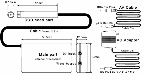 - Super Slim Head CCD Camera :φ7.5mm × 42mm